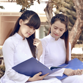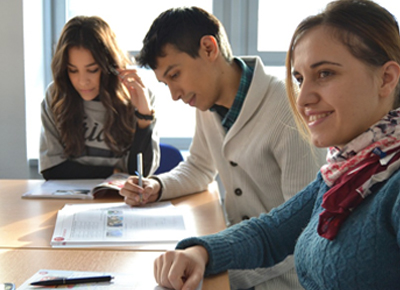 Full length of cheerful university students walking on campus